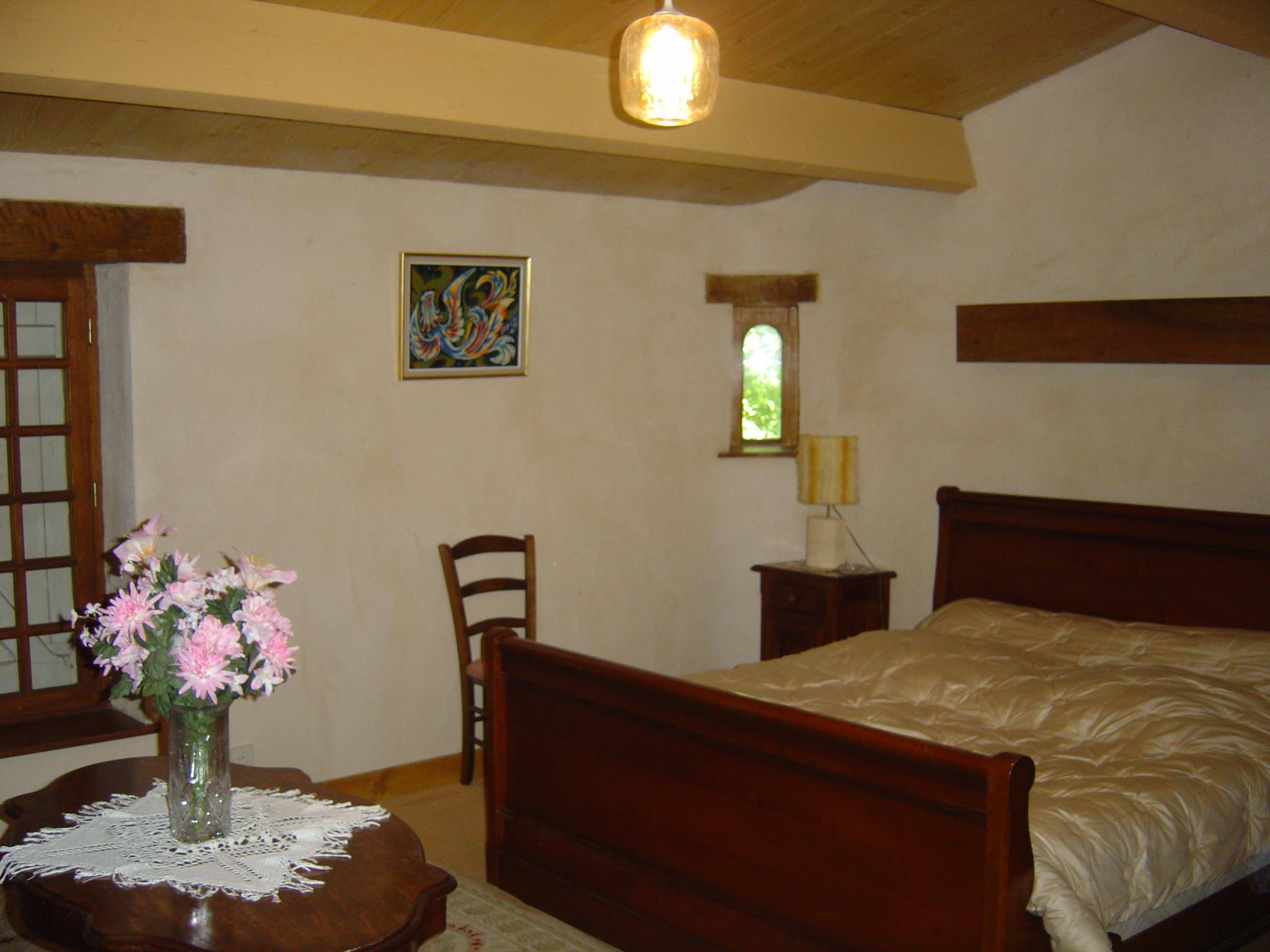 Grande chambre de 16 m2 avec un lit de 120 cm pour 2 personnes et un petit lit d’enfant à barreaux de 60x120 cm